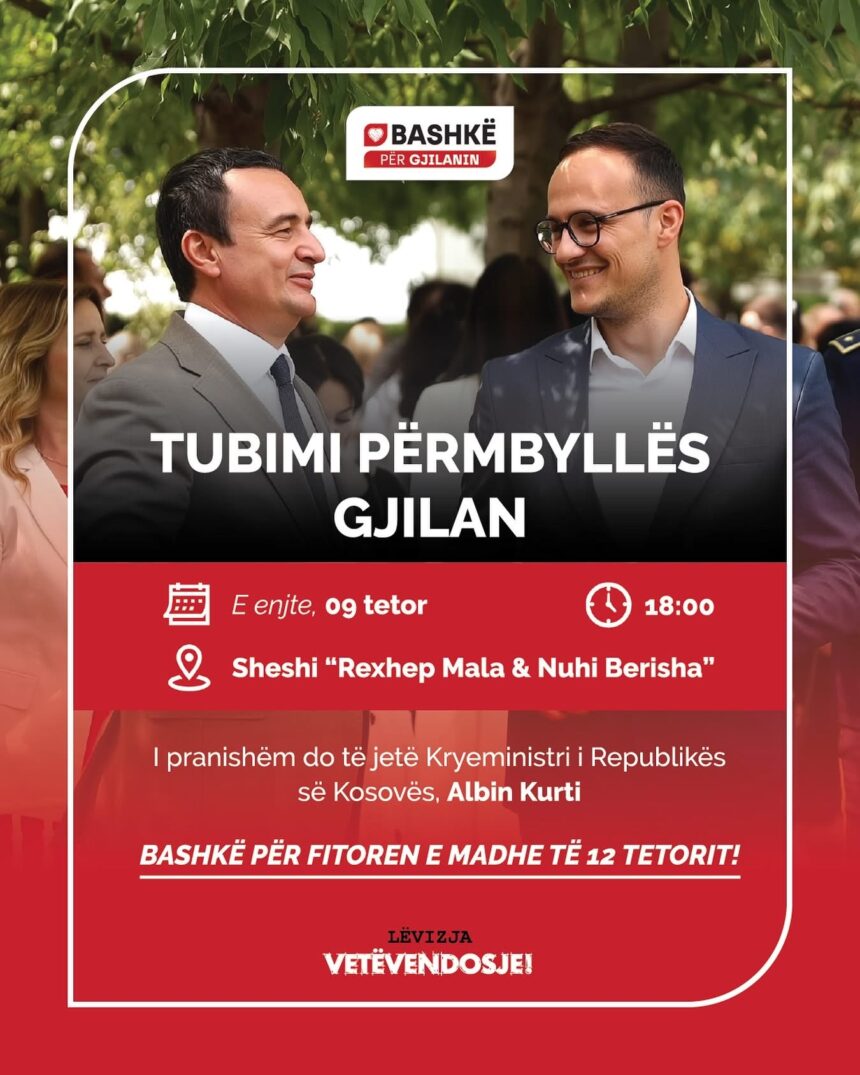 BASHKË me kryeministrin e Kosovës, Albin Kurtin, nga ora 18:00 do të mbajmë tubimin përmbyllës të kësaj fushate zgjedhore.