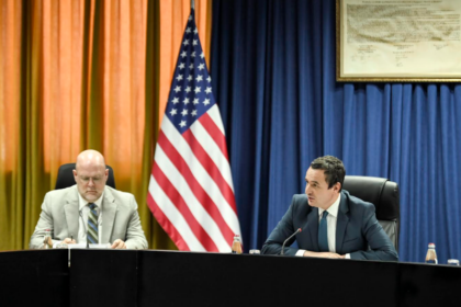 Kryeministri i Kosovës, Albin Kurti, bashkë me ambasadorin amerikan në Kosovë, Jeffrey…