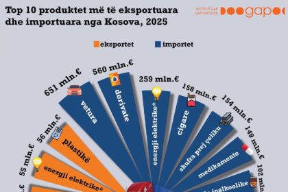 Eksportet dhe importet kryesore të Kosovës në 2025 sipas Institutit GAP