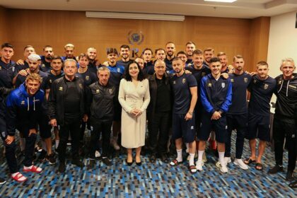 Presidentja Osmani i drejtohet lojtarëve: Presim fitore, jeni krenaria e Kosovës