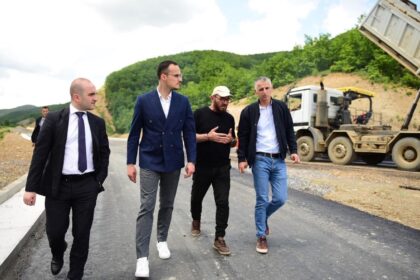 Hyseni dhe Durmishi, dalin në terren, shohin nga afër punimet në autostradën Gjilan-Prishtinë
