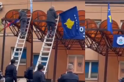 Largohen flamujt serbë nga objekti i Komunës së Zveçanit, vendoset flamuri i Republikës së Kosovës