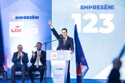 Kandidati për Kryeministër nga Lidhja Demokratike e Kosovës, Lumir Abdixhiku, gjatë një…