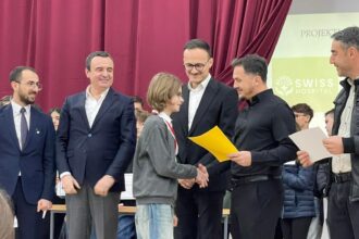 Kryeministri i Kosovës, Albin Kurti, mori pjesë në një ngjarje të organizuar në Gjilan për përmbylljen e projektit “Maths4talents”, një…