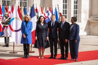 Presidentja e Kosovës Vjosa Osmani, bashkë me bashkëshortin e saj Prindon Sadriu, janë pritur nga presidenti i Francës, Emmanuel Macron,…