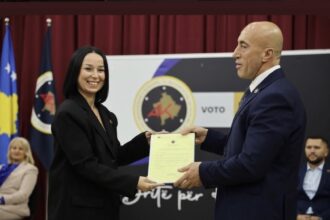 Ramush Haradinaj nderon me mirënjohje Ardita Ukshinin, konfirmon edhe kandidaturën e saj për Asamblenë Komunale në Gjilan Kryetari i Aleancës…