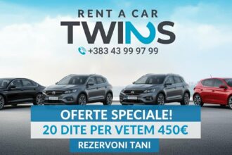 Ofertë speciale nga Twins Rent a Car – 20 ditë me vetëm 450 euro, rezervoni tani