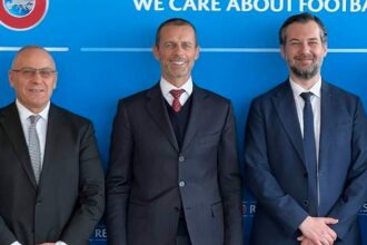 Presidenti Agim Ademi dhe ministri i Sportit, Hajrulla Çeku me bashkëpunëtorë, kanë takuar sot në selinë e UEFA-s në Nion,…
