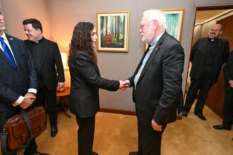 Presidentja e Kosovës, Vjosa Osmani ka takuar sekretarin për marrëdhënie me Shtetet e Selisë së Shenjtë kryeipeshkvin Paul Gallagher. Osmani…