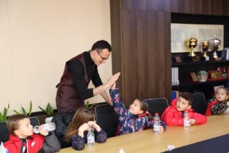 Fëmijët e çerdhes “Integj” festojnë 28 Nëntorin, kryetari Alban Hyseni i pret në zyrën e tij