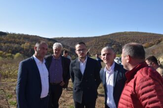Kryetari Hyseni, bashkë me ministrin Aliu dhe zëvendësministrin Durmishi, shohin nga afër punimet në autostradën Gjilan-Prishtinë