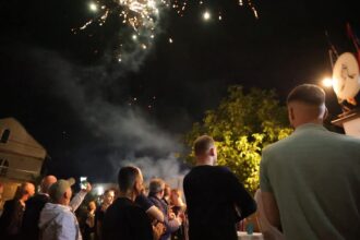 Arber Ismajli, kandidat për kryetar, pritet me fishekzjarre dhe entuziazëm nga Nëndega “Rruga e Ferizajit” në Gjilan