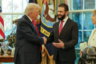 Presidenti Donald Trump priti presidentin sirian Ahmed al-Sharaa në Shtëpinë e Bardhë të hënën duke i dhuruar dy shishe me…