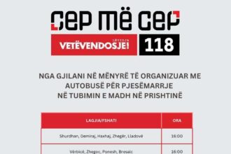 Lëvizja Vetëvendosje në Gjilan ka njoftuar se do të organizohet transport me autobusë për pjesëmarrësit e tubimit të madh në…