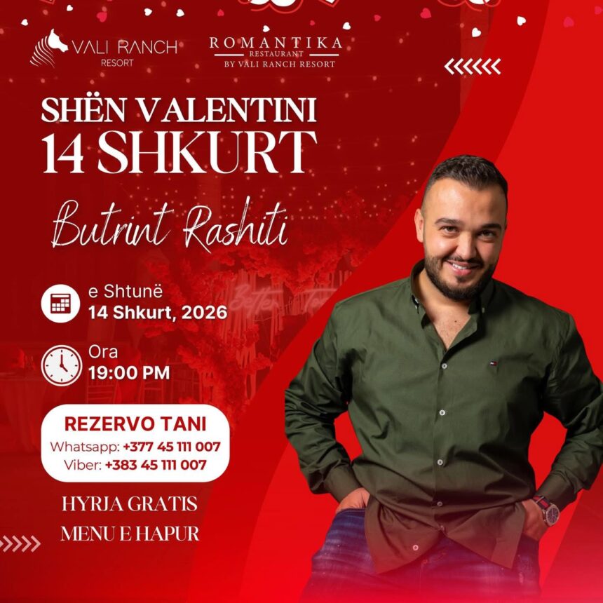 Ejani ta festojmë së bashku Ditën e Dashurisë me një mbrëmje të veçantë plot emocione dhe muzikë live.