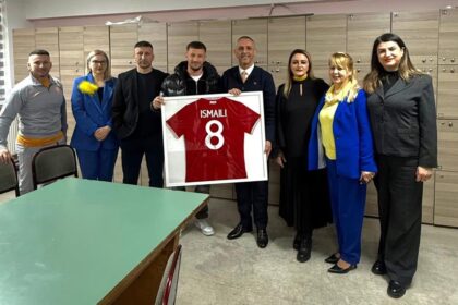 Redon Ismaili rikthehet në gjimnazin e tij, ylli i Partizanit të Tiranës frymëzon nxënësit me vizitën e tij.