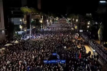 Partia Demokratike e Shqipërisë po zhvillon një protestë masive përpara Kryeministrisë, duke…