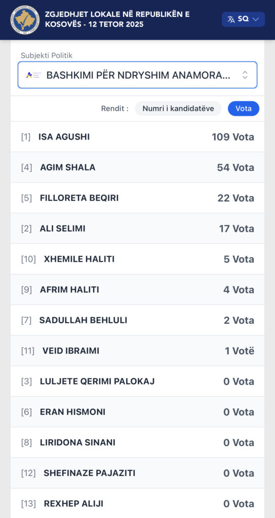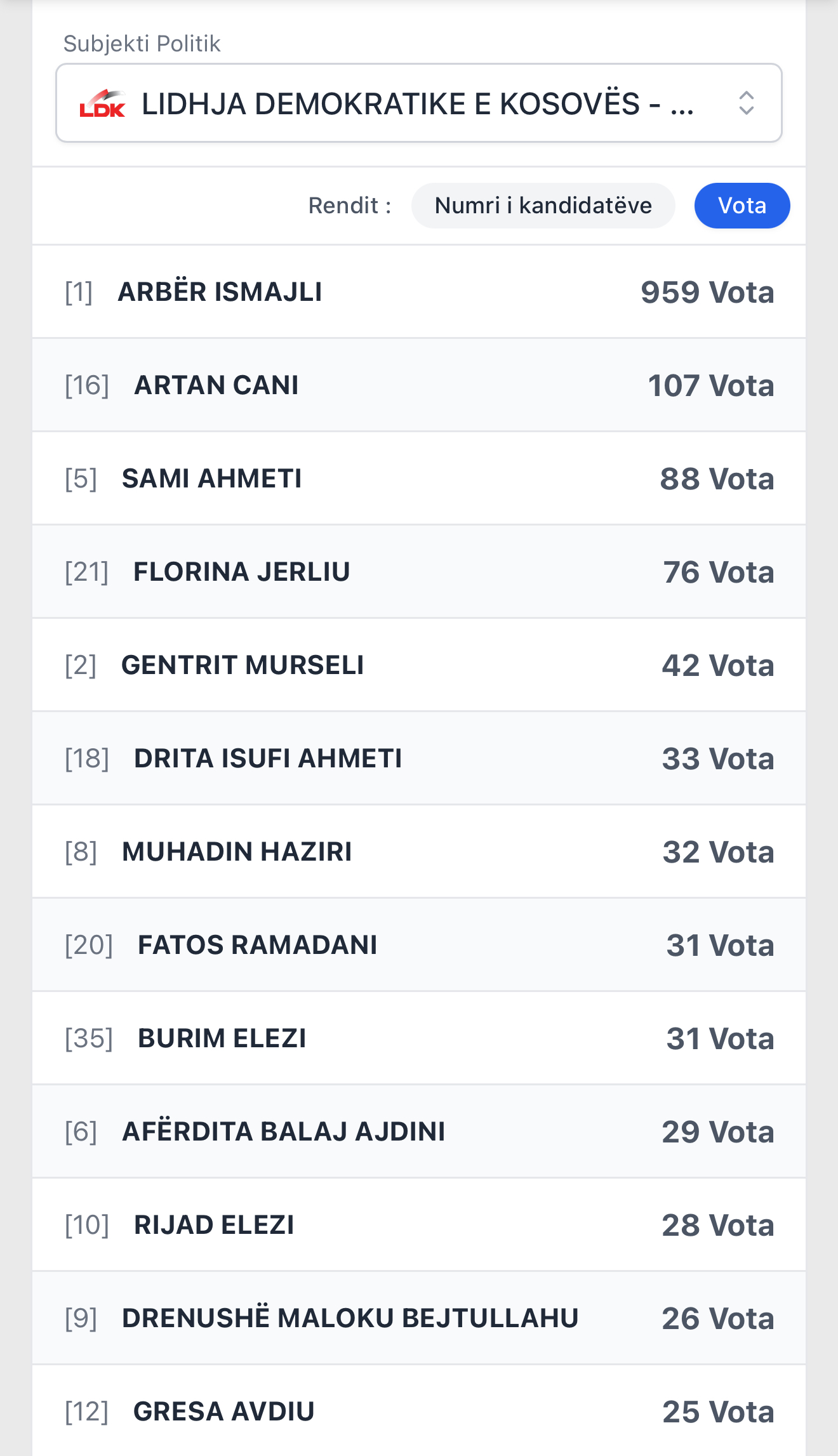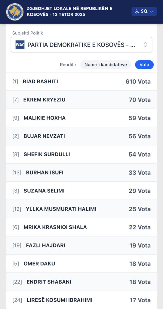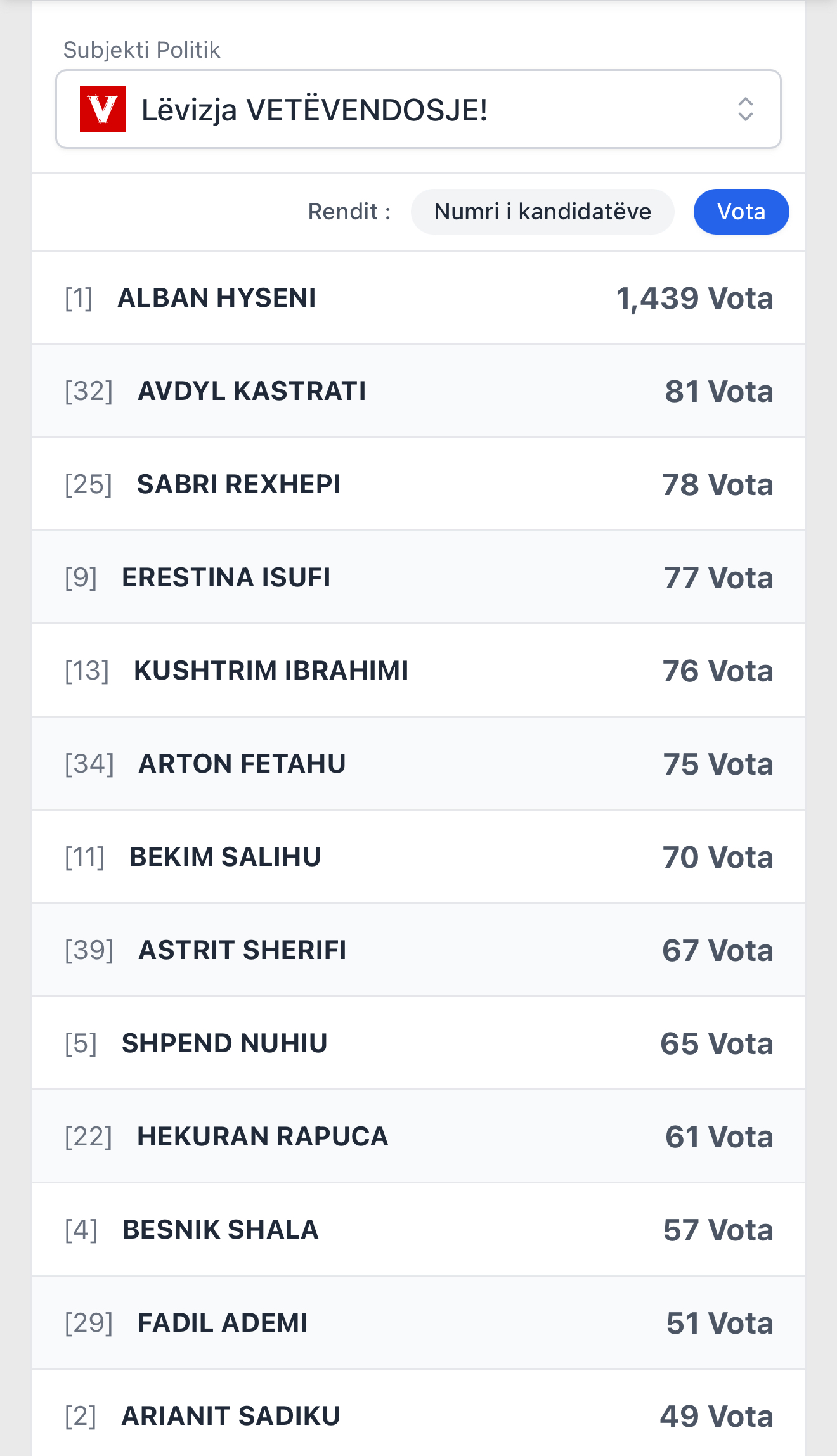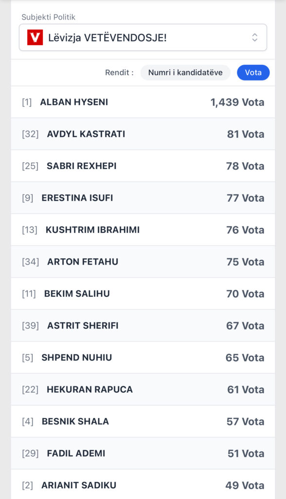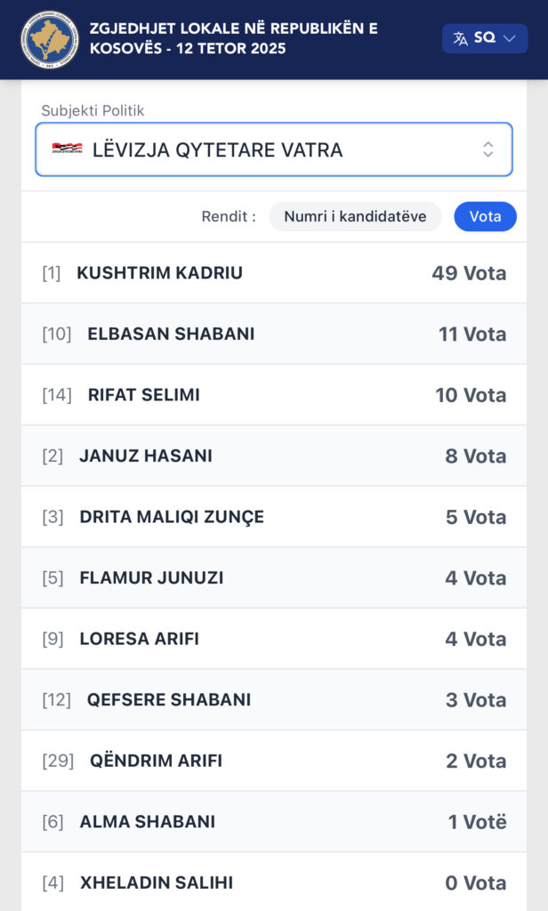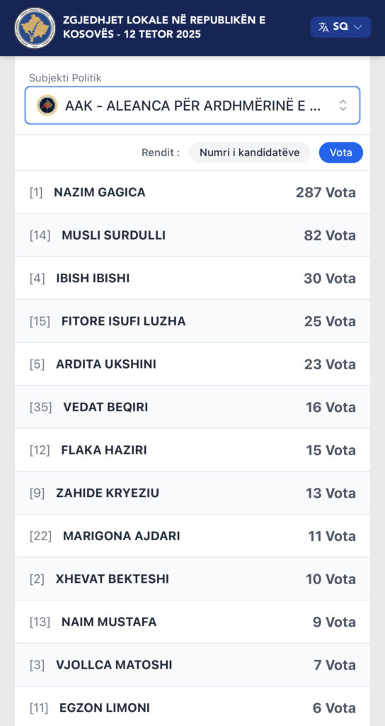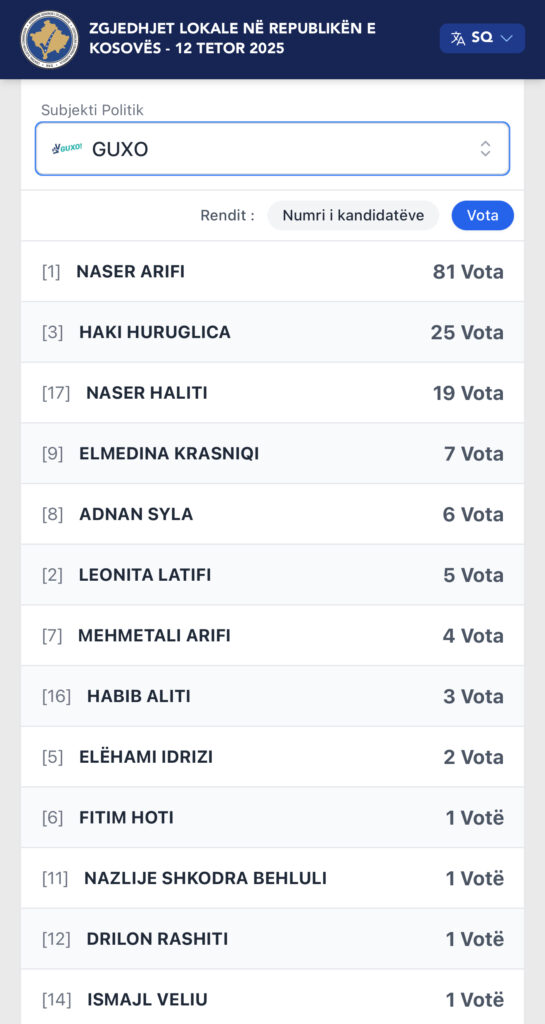 Komisioni Qendror i Zgjedhjeve ka filluar me publikimin e rezultateve të kandidatëve për asamble nëpër disa komuna. Në Gjilan, janë numëruar 15.04 përqind e votave.