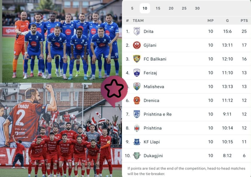 Pas 10 xhirove të para të këtij gjysmësezoni në edicionin 2026, dy skuadrat nga Gjilani – Drita dhe Gjilani – kanë grumbulluar më së shumti pikë në kampionat, duke dëshmuar formë të lartë dhe qëndrueshmëri mbresëlënëse.