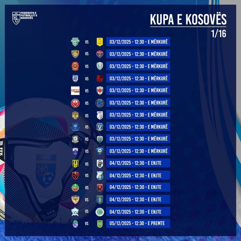 Pas hedhjes së shortit për Kupën e Kosovës, janë mësuar edhe çiftet e radhës. Drita do të përballet me Besën, ndërkohë, Gjilani do të takohet me Istogun.