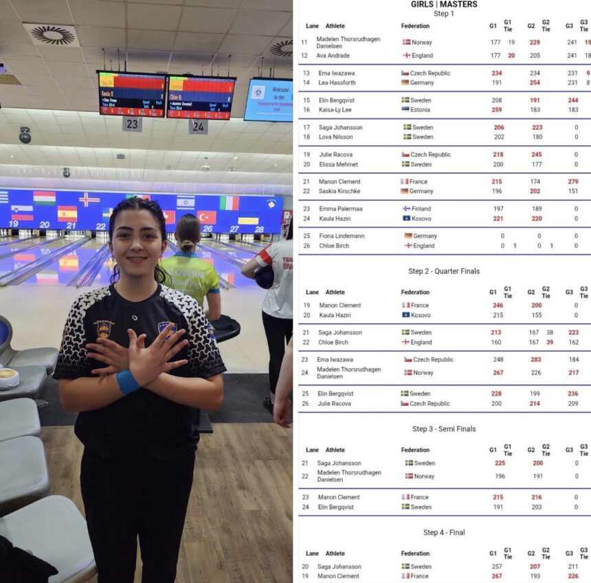 Në përfundim, Kaula Haziri u rendit në vendin e 8-të, duke u pozicionuar mes më të mirave në Europë nga gjithsej 57 lojtare pjesëmarrëse nga 32 shtete. Ky rezultat përbën një arritje shumë të rëndësishme për sportin e bowlingut në Kosovë dhe një dëshmi e progresit të vazhdueshëm në arenën ndërkombëtare.