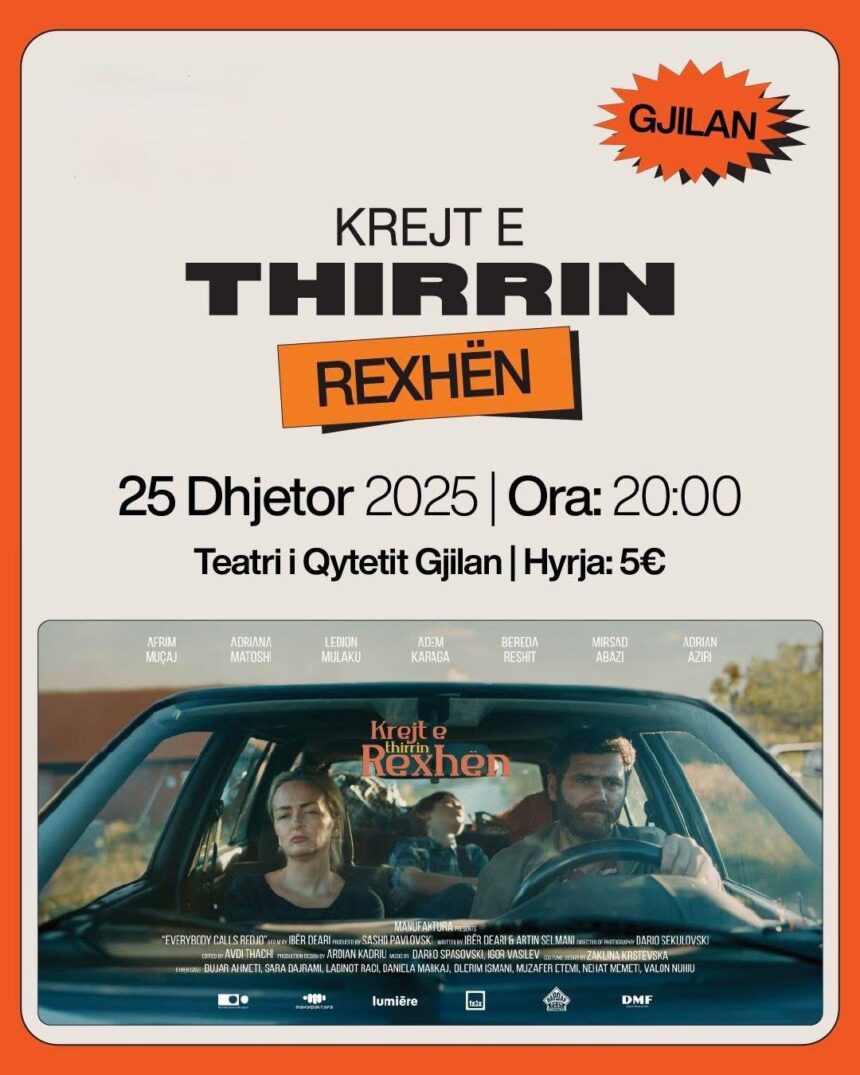 Filmi “Krejt e thirrin Rexhën”, regji nga Ibër Dehari, pas pjesëmarrjeve në shumë festivale brenda dhe jashtë vendit, vjen për herë të parë me prezantim në Gjilan. Premiera e filmit do të mbahet më 25 Dhjetor, në orën 20:00, në Teatrin e Qytetit Gjilan. Zhanri i tij është dramë-komedi.