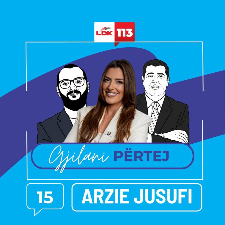 Në këtë moment vendimtar për komunën tonë, unë, Arzie Jusufi, kandidate e Lidhjes Demokratike të Kosovës me numër 15, ju ftoj të bashkohemi në rrugën e zhvillimit dhe të fitores.