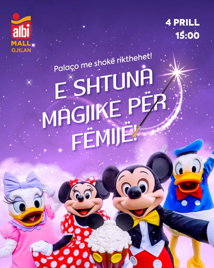 Më 4 prill, në ora 15:00, fëmijët dhe familjet janë të ftuar të përjetojnë një “Shtunë Magjike” të mbushur me buzëqeshje, surpriza dhe momente të paharrueshme. Në shoqërinë e personazheve të dashur si Mickey Mouse, Minnie Mouse, Donald Duck dhe Daisy Duck, atmosfera do të jetë plot gjallëri dhe emocion.