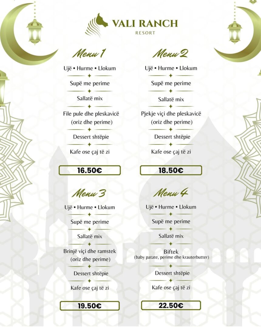 Gjatë muajit të shenjtë të Ramazanit, Vali Ranch Resort & Congress Center sjell menutë e veçanta të iftarit, të përgatitura me përkushtim dhe shije autentike.