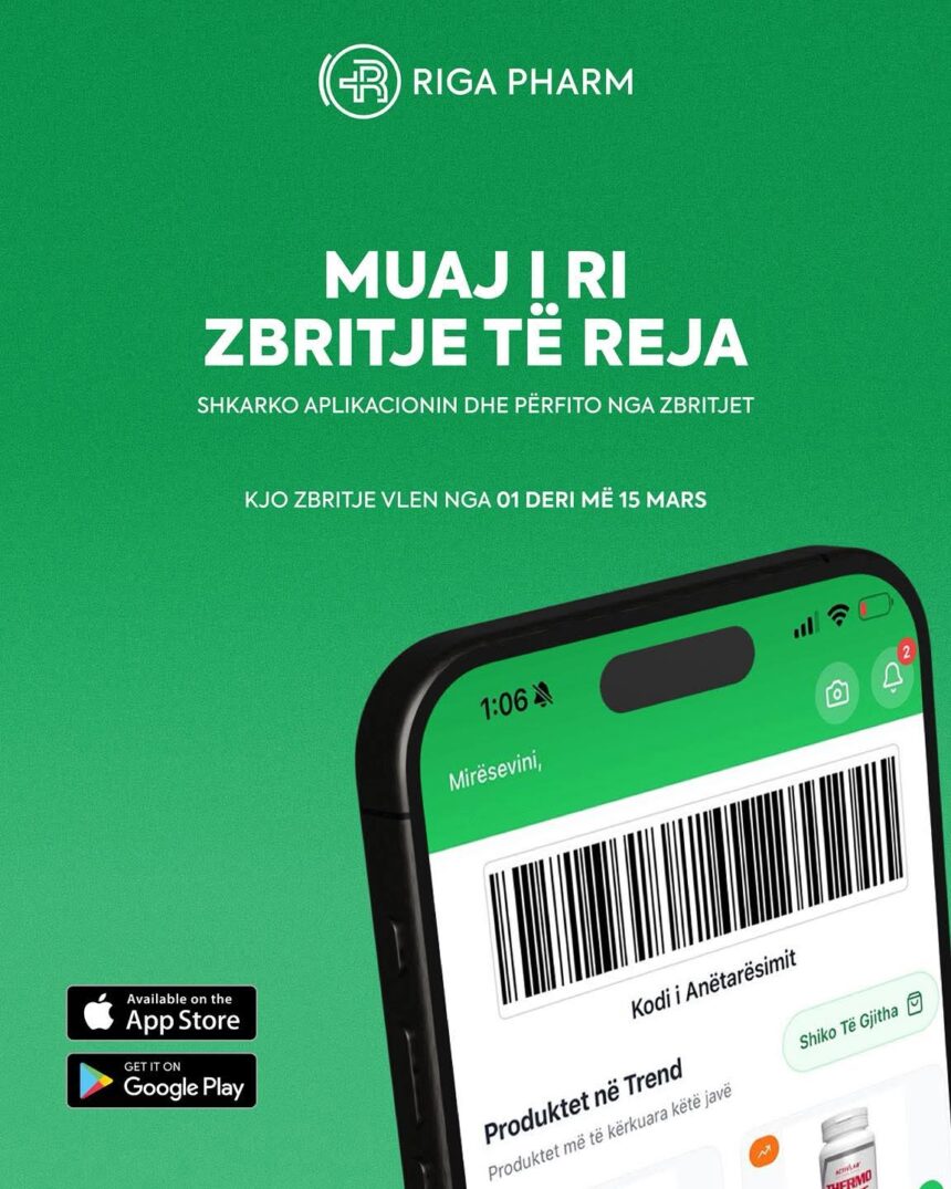 📲 Zbritja vlen ekskluzivisht përmes aplikacionit Riga Pharm. Mjafton ta shkarkoni aplikacionin dhe ta skanoni produktin për të aktivizuar zbritjen 🤍