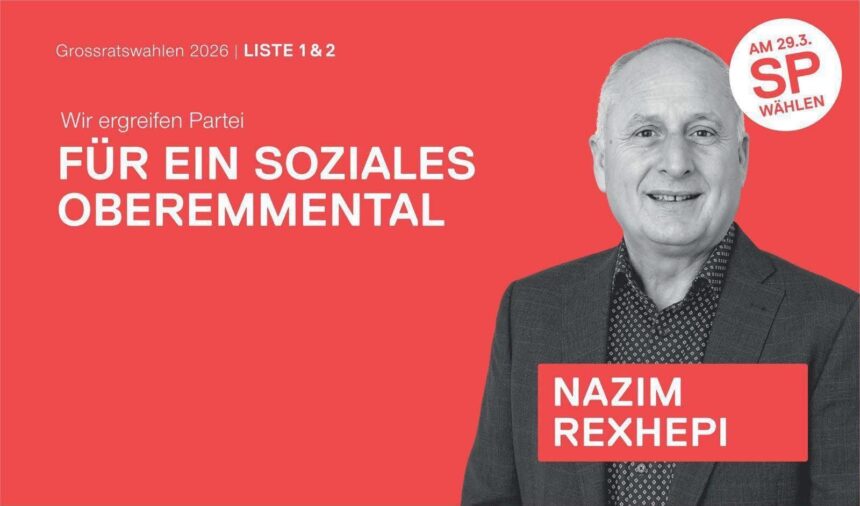 Nazim Rexhepi është kandidat në zgjedhjet për Këshillin e Madh (Grossrat) 2026, duke përfaqësuar listat 1 dhe 2, me fokus të qartë në forcimin e politikave sociale në rajonin e Oberemmental-it.