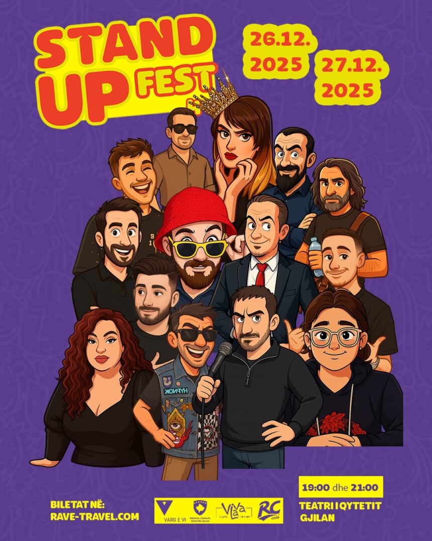 Stand Up komedianët: Avni Shkodra, Ernest Zymberi, Euron Fetahi, Flakrim Fejzullahu, Valina Muçolli, Mentor Shuki dhe Hasim Sopi Memishi