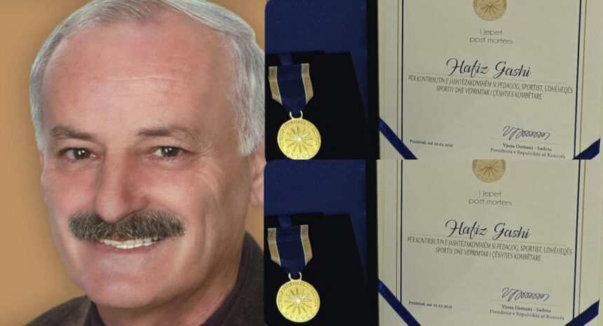 Presidentja e Republikës së Kosovës, Vjosa Osmani, ka dekoruar me Medaljen Presidenciale të Meritave Prof. Hafiz Gashin, profesorin e ndjerë, për përkushtimin dhe shembullin e tij të jashtëzakonshëm.