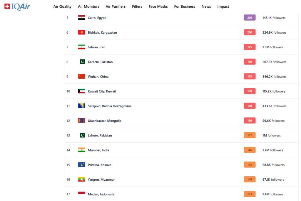 Kryeqyteti ynë, këtë mbrëmje po radhitet i 15-ti në botë sa i përket ndotjes së ajrit.