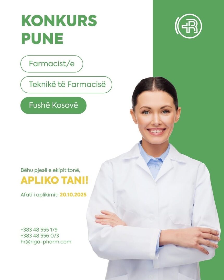 Në kuadër të zgjerimit dhe zhvillimit, Riga Pharm hap konkurs pune në Fushë Kosovë për këto pozita: