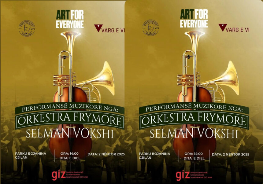 Sot, në orën 14:00, në parkun “Bojanina” të Gjilanit, do të mbahet një performancë muzikore nga Orkestra Frymore “Selman Vokshi”, në kuadër të projektit “Art for Everyone”, të zhvilluar nga organizata Varg e Vi me mbështetje financiare nga GIZ-i.