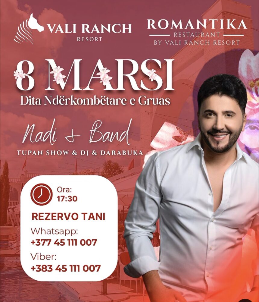 Me rastin e 8 Marsit – Ditës Ndërkombëtare të Gruas, ju ftojmë të bëheni pjesë e një mbrëmjeje të veçantë festive në ambientet ekskluzive të Restaurant Romantika, në Vali Ranch Resort & Congress Center.